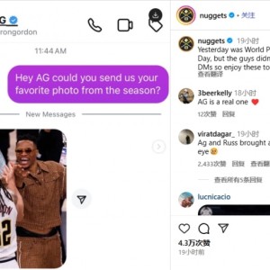 还能重聚吗?掘金官方:戈登选择与威少的合照为本赛季最爱照片!
